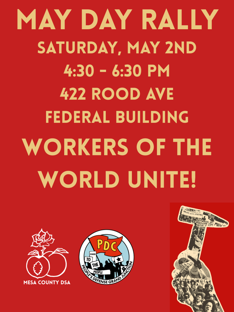 Join us in rallying this International Worker’s Day! We will be at the old Federal Building from 4:30-6:30 pm. Bring your friends and your energy, and let’s demonstrate worker solidarity.